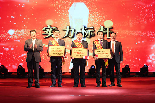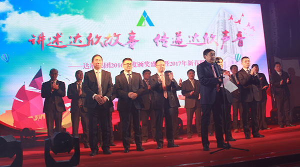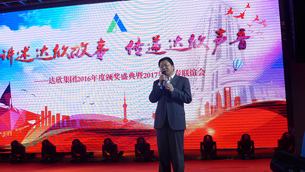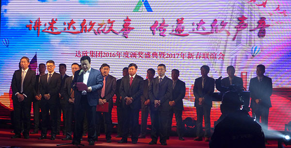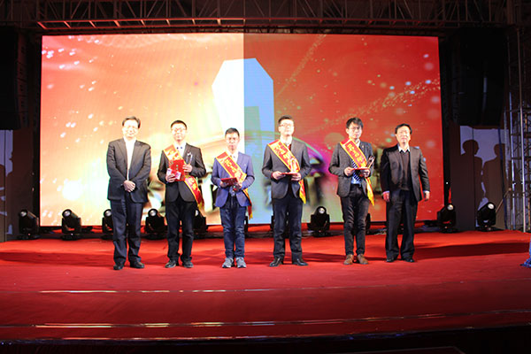 集團(tuán)黨委書記劉厚純宣讀了表彰決定, 縣領(lǐng)導(dǎo)為獲得集團(tuán)2016年度的創(chuàng)優(yōu)標(biāo)桿、實力標(biāo)桿、項目標(biāo)桿與管理標(biāo)桿、達(dá)欣新銳等先進(jìn)個人代表進(jìn)行了頒獎。