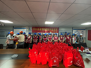 6月29日下午,第三工程公司在江城首邑項(xiàng)目部舉行夏季高溫慰問(wèn)活動(dòng)。第三工程公司副經(jīng)理吉祥和工會(huì)負(fù)責(zé)人丁連勇親自為全體員工送上了防暑慰問(wèn)品,表達(dá)了公司對(duì)員工的關(guān)心和關(guān)愛(ài)。