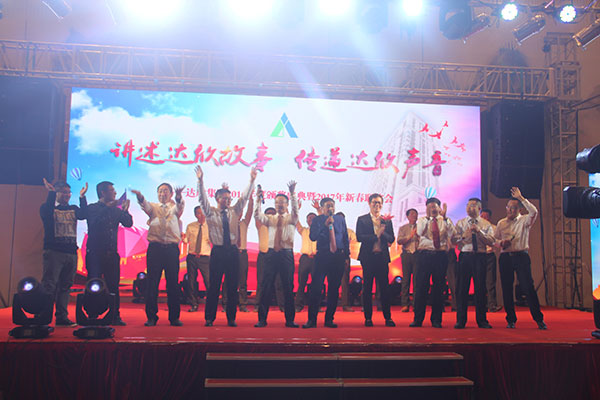 集團(tuán)高管們?cè)谂炫鹊摹斑_(dá)欣之歌”聲中激情登場(chǎng),公司董事長(zhǎng)馬和軍進(jìn)行了致辭答謝。他回顧了公司 一年來(lái)所取得的輝煌成績(jī),感謝社會(huì)各界及公司全體同志們的努力,并對(duì)公司的未來(lái)發(fā)展之路描繪了藍(lán)圖;接著,縣委書(shū)記陸衛(wèi)東發(fā)表重要講話(huà), 他指出,建筑業(yè)是我縣的傳統(tǒng)產(chǎn)業(yè),也是一個(gè)富民強(qiáng)勢(shì)產(chǎn)業(yè),還是我縣財(cái)政收入的重要來(lái)源之一,作為縣內(nèi)的骨干企業(yè),達(dá)欣公司步入了公司歷史以來(lái)發(fā)展最快、榮譽(yù)最高、分配最多、貢獻(xiàn)最大的時(shí)期,他希望公司要加快發(fā)展,高起點(diǎn)定位,突出重點(diǎn),好中求快,實(shí)現(xiàn)達(dá)欣新飛躍。