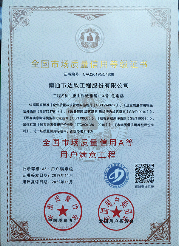一舉獲得三項殊榮不僅僅是向外界展示了達欣集團在工程建設(shè)上的技術(shù)實力和精品工程信譽度,更是達欣集團在工程建設(shè)中以“質(zhì)量贏得市場,使企業(yè)建立較強的市場競爭力”。