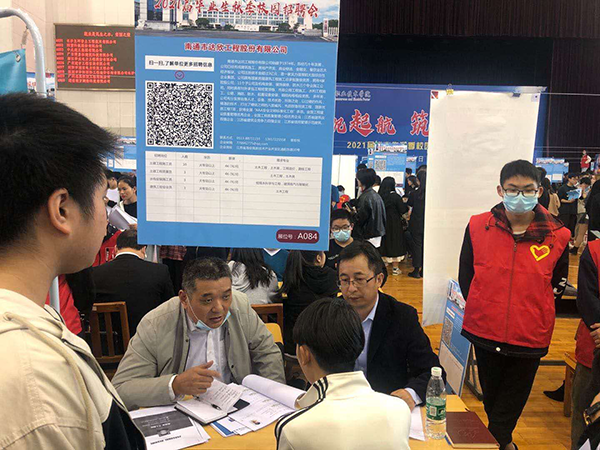 近日,第八工程公司組織參加了湖南省水利水電職業(yè)技術(shù)學(xué)院2021屆畢業(yè)生秋季大型校園招聘會(huì)。會(huì)上,通過(guò)積極推薦及宣傳,有許多優(yōu)秀畢業(yè)生對(duì)我司頗感興趣,紛紛表示有意向來(lái)公司就職,有些學(xué)生甚至得到老師的推薦專程來(lái)我司展位臺(tái)應(yīng)聘。我們將積極而為,通過(guò)此次招聘雙向選擇,為企業(yè)選用優(yōu)秀的畢業(yè)生,助力企業(yè)高質(zhì)量發(fā)展提供人才保障。