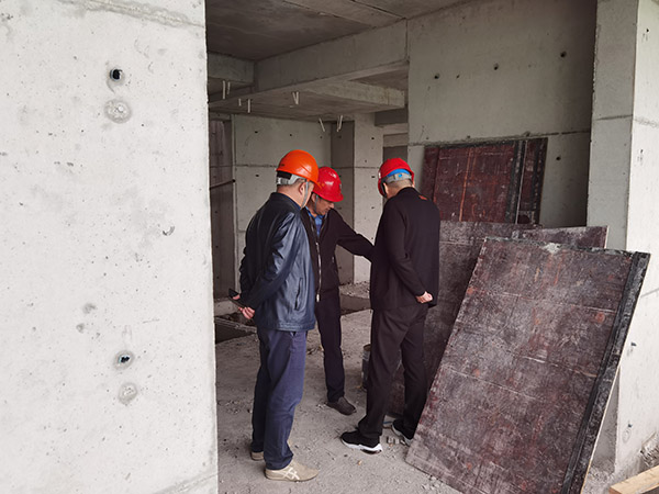 在施工現(xiàn)場,董事長馬和軍聽取了項目建設情況的匯報,高度肯定了項目主樓采用的疊合板底漏漿控制技術,并對檢查中發(fā)現(xiàn)的問題提出了整改意見。