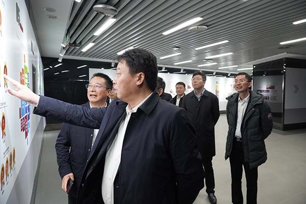 于立忠等領(lǐng)導參觀了企業(yè)展示中心、馬和軍勞模創(chuàng)新工作室黨支部,觀看了達欣集團“紅旗鐵軍”專題片,了解了集團在黨員管理工作方面“實施項目化管理,樹達欣黨建鐵軍品牌”的特色做法。在企業(yè)展示中心,于立忠系統(tǒng)了解了企業(yè)40多年來的發(fā)展歷程和集團黨委開展的四項融合、四微黨建、三項目標的“四四三”黨建工作法,以及具有達欣特色的“工地黨旗美如畫”黨建工作。