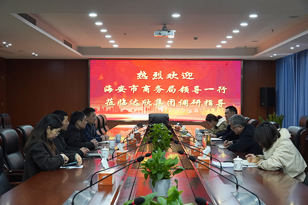 3月3日上午,海安市商務局黨組書記、局長馮永進,副局長史霞兵一行蒞臨集團開展工作調(diào)研。董事長馬和軍、常務副總經(jīng)理王邦國等陪同。