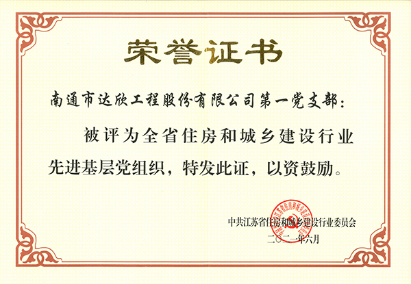 近日,第一黨支部被中共江蘇省住房和城鄉(xiāng)建設(shè)行業(yè)委員評為“全省住建行業(yè)先進(jìn)基層黨組織”稱號,同時也是江蘇出省建筑單位進(jìn)滬唯一一家獲得此榮譽(yù)的先進(jìn)黨組織。