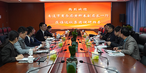 2月24日上午,南通市商務(wù)局黨組成員、副局長黃柳春率隊蒞臨達欣集團調(diào)研,海安市商務(wù)局副書記、副局長史霞兵,集團董事長馬和軍、黨委書記劉厚純、常務(wù)副總經(jīng)理王邦國等陪同。