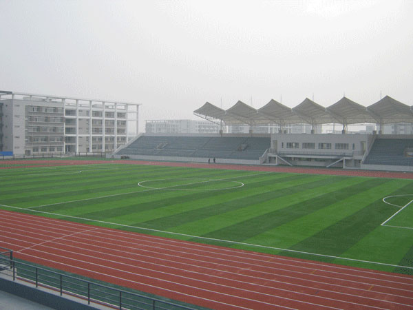 江蘇省海安縣職業(yè)教育中心校體育場(chǎng)為400米塑膠田徑運(yùn)動(dòng)場(chǎng)工程,田徑場(chǎng)占地面積16999m2,主看臺(tái)長(zhǎng)150米,寬17.5米,輔看臺(tái)長(zhǎng)104米,寬10米。主看臺(tái)占地面積為2173.4m2,輔看臺(tái)占地面積為1008m2,田徑場(chǎng)跑道為混合型塑膠面層,中間足球場(chǎng)為進(jìn)口人工草皮,周邊輔助區(qū)為人工草皮。該體育場(chǎng)的建成將為海安群眾性體育活動(dòng)的開(kāi)展提供便利。