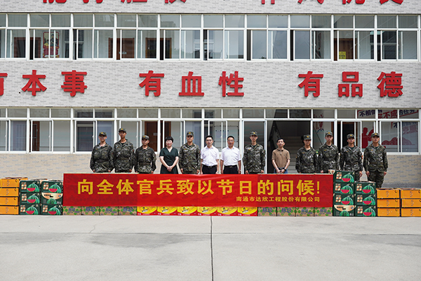 為慶祝中國(guó)人民解放軍建軍96周年,大力弘揚(yáng)愛(ài)軍擁軍的光榮傳統(tǒng),推動(dòng)軍民融合發(fā)展,7月31日,達(dá)欣集團(tuán)黨委、工會(huì)聯(lián)合海安市人武部組織魯班傳人志愿服務(wù)隊(duì)成員來(lái)到武警南通支隊(duì)執(zhí)勤二大隊(duì)海安中隊(duì)開(kāi)展“愛(ài)國(guó)擁軍‘欣’向黨,共敘軍民魚水情”擁軍慰問(wèn)活動(dòng),集團(tuán)在海領(lǐng)導(dǎo)劉厚純、楊靜參加活動(dòng)。