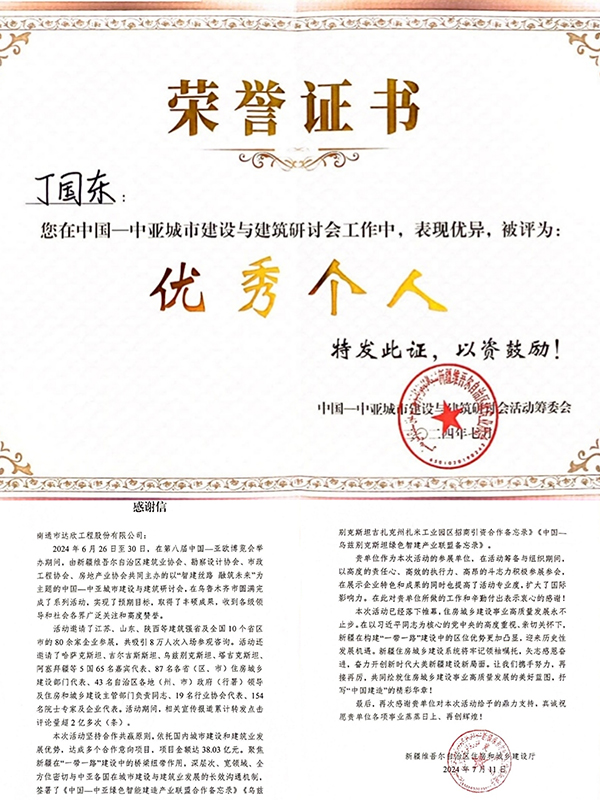 近日,公司收到一封新疆維吾爾自治區(qū)住房和城鄉(xiāng)建設(shè)廳發(fā)來的感謝信,信中對(duì)我公司在烏魯木齊召開的“智建絲路 融筑未來”為主題的中國(guó)——中亞城市建設(shè)與建筑研討會(huì)中,所做的工作和辛勤付出表示衷心的感謝。公司作為本次活動(dòng)的江蘇省參展單位之一,在活動(dòng)籌備期間,以高度的責(zé)任心、高效的執(zhí)行力、高昂的斗志積極參展參會(huì),在展示企業(yè)特色和成果的同時(shí)也提高了活動(dòng)專業(yè)度,擴(kuò)大了國(guó)際影響力。