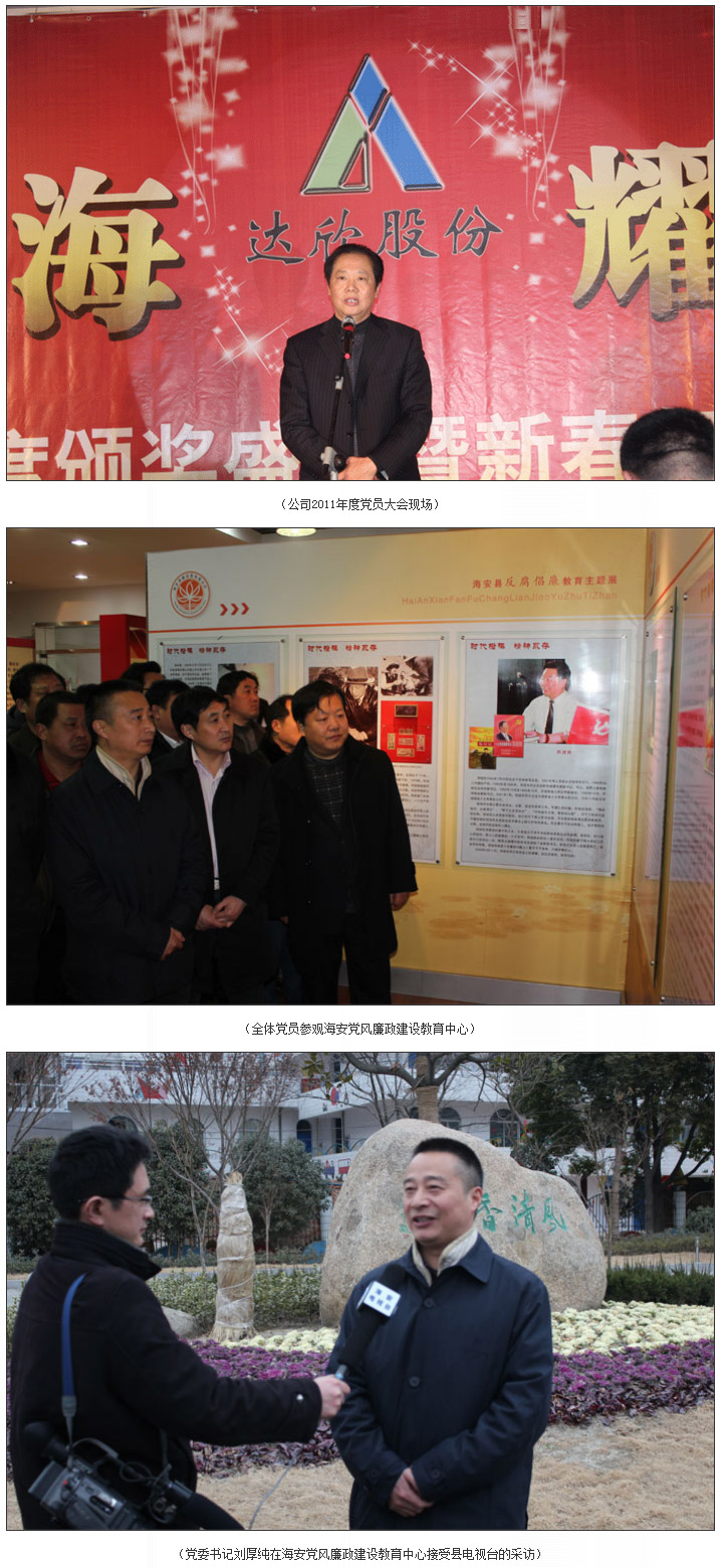 會(huì)議由公司董事長(zhǎng)、黨委副書(shū)記馬和軍同志主持,上午在進(jìn)行了4名預(yù)備黨員同志入黨誓詞、各支部推薦的7名優(yōu)秀黨員后,盧榮翔書(shū)記對(duì)公司全體黨員進(jìn)行了冬訓(xùn)補(bǔ)課講座,他從家鄉(xiāng)的建設(shè)發(fā)展、建筑業(yè)面臨的發(fā)展機(jī)遇等進(jìn)行了講述,并對(duì)公司的未來(lái)發(fā)展方向提出了要求與希望,勉勵(lì)全體黨員要在科學(xué)觀的引領(lǐng)下,積極開(kāi)展創(chuàng)先爭(zhēng)優(yōu)活動(dòng),為達(dá)欣的強(qiáng)勁發(fā)展做出應(yīng)有的貢獻(xiàn)。接著公司黨委書(shū)記劉厚純同志作了題為“揚(yáng)帆起航聚心力,創(chuàng)先爭(zhēng)優(yōu)求發(fā)展”2010年黨建總結(jié)暨2011年黨建工作要求的報(bào)告,報(bào)告從突出黨組織建設(shè),發(fā)揮堅(jiān)強(qiáng)的堡壘作用、突出生產(chǎn)經(jīng)營(yíng)建設(shè),為企業(yè)發(fā)展助力升威、突出改革創(chuàng)新理念,發(fā)揮黨員引領(lǐng)作用、突出“創(chuàng)先爭(zhēng)優(yōu)”活動(dòng)主題,營(yíng)造積極向上的企業(yè)氛圍等六個(gè)方面對(duì)2010年進(jìn)行了總結(jié),對(duì)2011年的黨建工作目標(biāo)、工作重點(diǎn)、工作舉措進(jìn)行了闡述,要求全體黨員同志要進(jìn)一步增強(qiáng)政治意識(shí)、責(zé)任意識(shí)、創(chuàng)新創(chuàng)優(yōu)意識(shí)、大局意識(shí),為公司全面完成2011年各項(xiàng)工作任務(wù)而共同努力!