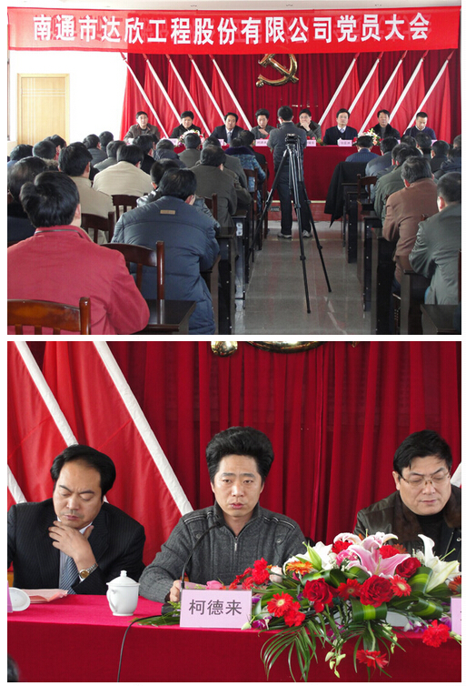 2月20日下午,公司全體黨員聚集在黨員活動室召開南通市達欣工程股份有限公司黨員大會??h委常委、常務副縣長柯德來、縣人大副主任、組織部副部長章曙東、組織部副部長陳興俊、組織科科長成剛、吉清海、鎮(zhèn)黨委書記盧忠平、鎮(zhèn)長錢亞洲及鎮(zhèn)黨委等領導在百忙之中參加了我公司的黨員大會。這次黨員大會共選舉產生了七位黨委委員:丁興元、馬和軍、劉厚純、陳春紅、徐仁忠、溫鶴華、謝果生,選舉產生了三位紀委委員:王建國、楊靜、徐仁忠。劉厚純任公司黨委書記、馬和軍任公司黨委副書記、徐仁忠任公司紀委書記。