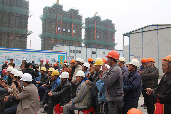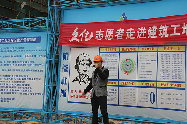 文化志愿者的精彩演出受到了職工們的熱烈歡迎,“我平時都在高空作業(yè),難得有這樣的機(jī)會坐下來看現(xiàn)場表演,這樣的活動讓我們感到很開心。”工友李仁國笑容滿面地說。