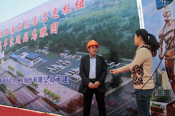 在開工儀式后,馬董事長現(xiàn)場接受了海安電視臺的采訪,代表公司向全縣人民承諾,要把本項目作為公司的重點工程、形象工程展示給全縣人民,做到抓質(zhì)量精益求精,抓進度一絲不茍,抓安全防微杜漸,以一流的素質(zhì),一流的服務,一流的技術,打造出優(yōu)質(zhì)的精品工程回饋家鄉(xiāng)人民。
